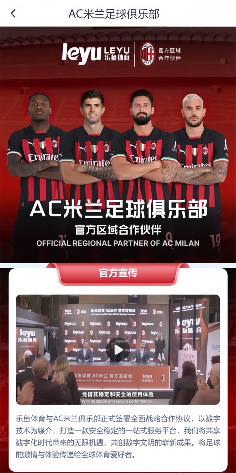 作为线上娱乐行业的领军者、欧洲杯投注平台,乐鱼与一系列顶级体育俱乐部和国家队建立了牢固的赞助合作关系,包括曼联、拜仁慕尼黑、巴黎圣日尔曼、AC米兰、里昂、阿根廷国家队等。这些赞助活动是乐鱼品牌实力的有力背书,为用户提供了可靠的安全保障。